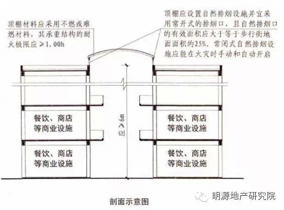 3.步行街的端部在各層均不宜封閉,確需封閉時,應在外墻上設置可開啟的門窗,且可開啟門窗的面積不應小于該部位外墻面積的一半。