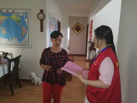 志愿者在文昌花園7號(hào)樓居民家進(jìn)行走訪宣傳