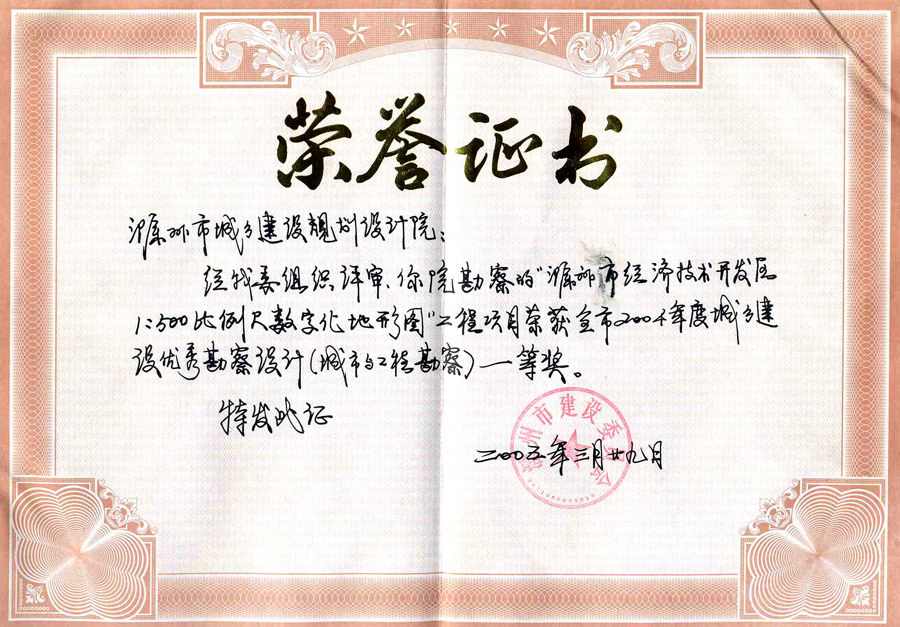 測量隊(duì)獲獎項(xiàng)目 建委2005一等獎